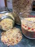 Freshly ground cornmeal ...mixed colors: Italian Florianni corn - which is a beautiful orange with a creamy yellow interior; Oaxacan Green - yellow/white with flecks of green; Kentucky Rainbow as well. REALLY tasty! Corn bread recipes included!