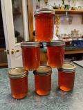 (pictured) Quince Jelly! Locally grown, complex sweet/tart flavor! A delightful underused and under appreciated fruit. I put my hand right up when a friend here in Farmington offered extra fruit! Beautiful golden/pink jelly with a complex flavor ...sweet ...sugar of course, but tart as well.