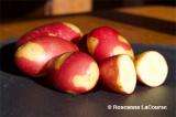 (pictured) Pinto Fingerlings: red & yellow speckled skin, yellow flesh. Gorgeous fingerlings - speckled red and yellow skin - like a Pinto pony - with yellow flesh. Excellent for roasting, steaming, or frying.